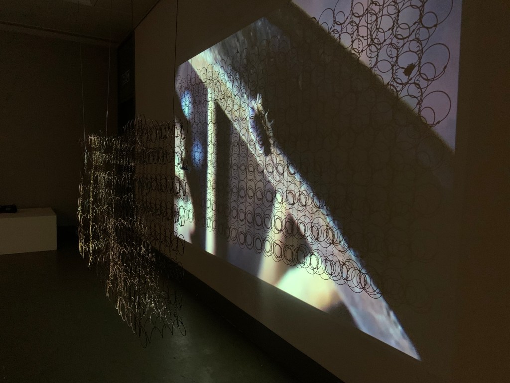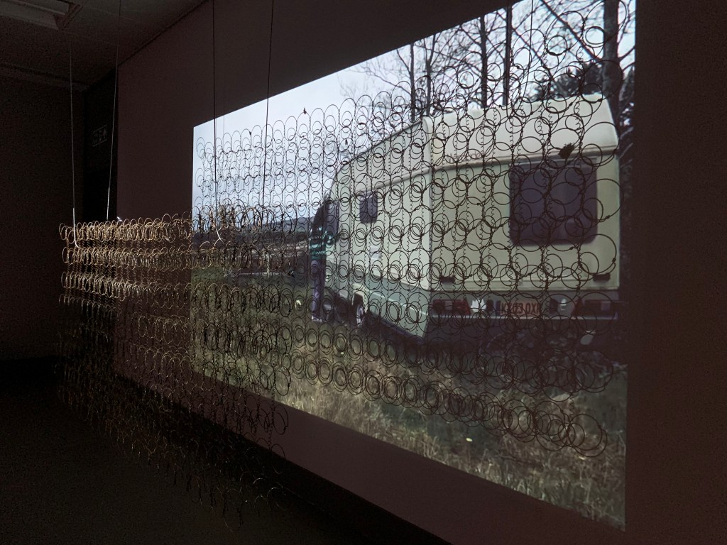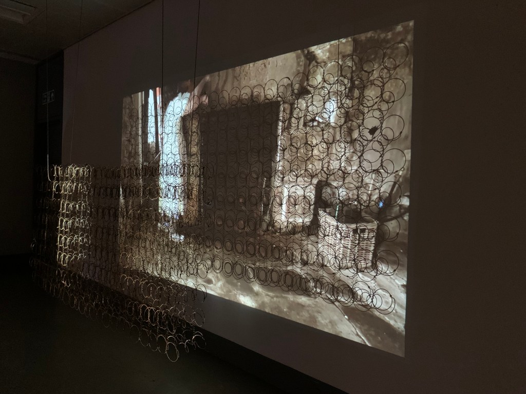 A short film set at a remote derelict cottage. It explores the desire to seek simplicity and solitude, away from urban chaos and how ultimately, the struggle is within. As an installation, the film is projected through salvaged mattress springs.